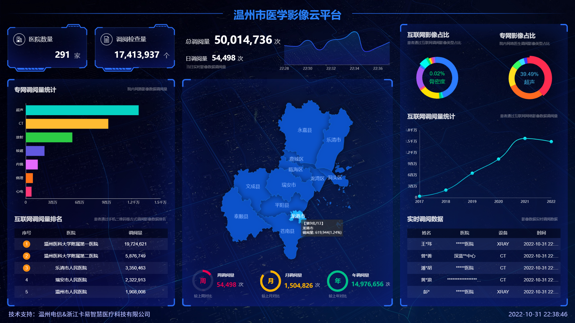 浙江省內(nèi)最大云影像平臺(tái) 日均移動(dòng)調(diào)閱量7.5萬次 平臺(tái)總調(diào)閱量超過一億次 2018年浙江省醫(yī)療衛(wèi)生服務(wù)領(lǐng)域“最多跑一次”改革十佳案例(影像云唯一)